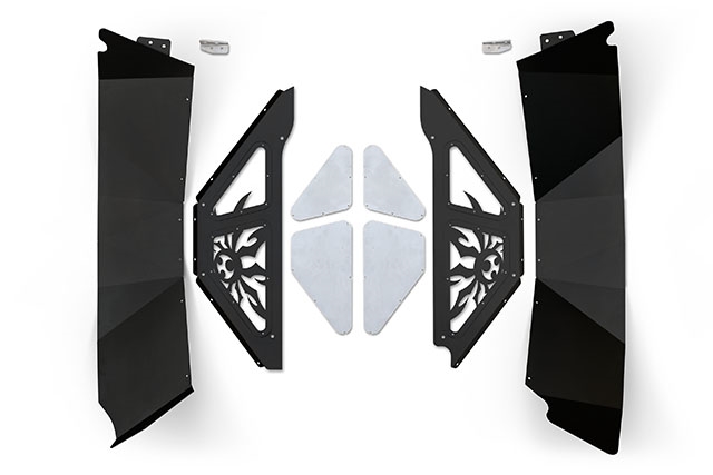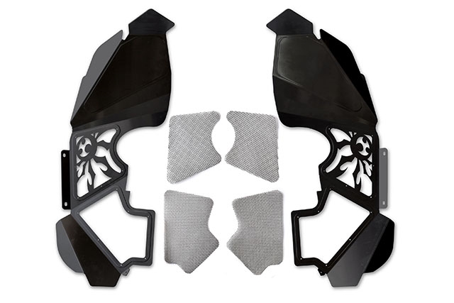 Poison Spyder Vented Inner Fenders dress up the look of your front wheel wells with beautiful CNC laser cut, bead-rolled and brake-formed aluminum panels with stainless steel mesh vented inserts to promote airflow through the engine bay.
